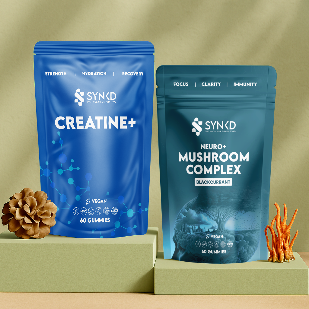 SYNKD functional gummies are crafted with a synergistic blend of adaptogenic mushrooms and essential micronutrients to support holistic well-being. Each formula is designed to enhance focus, nourish the gut, and promote radiant skin—helping you feel balanced from the inside out. Whether you're aiming for mental clarity, immune support, or a natural glow, SYNKD keeps your body, mind, and skin in sync.